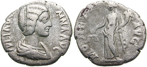 DOMNA, wife of Septimius Severus. Struck 194 AD. AR Denarius (2.67 gm).