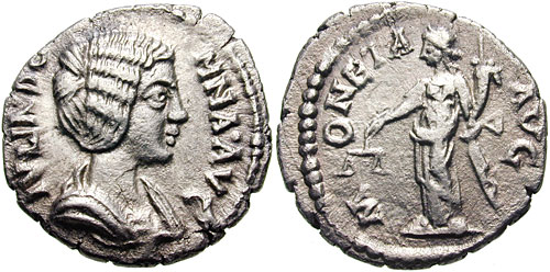 Alexandria mint . IVLIA DO-MNA [AVG], draped bust right / MO-NETA AVG, Moneta