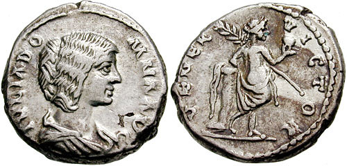 194-195 AD. IVLIA DO-MNA AVG, draped bust right / VENE-RI V-ICTR, Venus standing