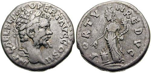IMP CAE L SEP SEV PERT AVG COS II, laureate head right / FORTVN AVG, Fortuna
