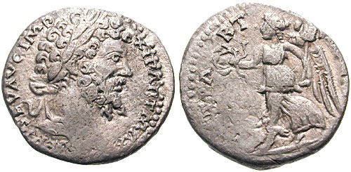 SEVERUS. 193-211 AD. AR Imitation Denarius (2.61 gm). Laureate head right /