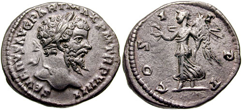 SEPT SEV AVG IMP XI PART MAX, laureate head right / VICT AV-GG C-OS II P P,