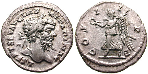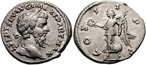 AD. L SEPT SEV AVG IMP XI PART MAX, laureate head right / COS II P P, Victory