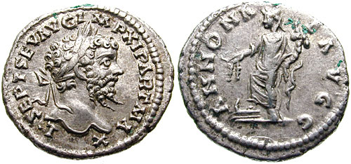 AD. L SEPT SEV AVG IMP XI PART MAX, laureate head right / ANNONA-E AVGG, Annona